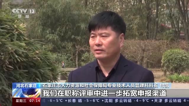 石家莊市人力資源和社會保障局專業(yè)技術人員管理科科長 付凱:我們在職稱評審中,進一步拓寬申報渠道。對高校畢業(yè)生職稱認定從原來一年一次的集中初聘認定,改為現在一月一次的考核認定,實現人才職稱的即報即審,對穩(wěn)定高校畢業(yè)生就業(yè)起到了保障作用,使得人才引得來,留得住。