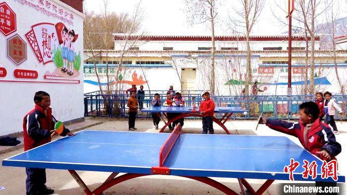 圖為多油完小學(xué)生在課余時(shí)間打乒乓球?!∝暽@?攝