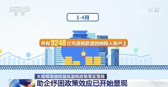 據(jù)統(tǒng)計(jì),今年4月1日至30日,全國(guó)已有8015億元增值稅留抵退稅款退到145.2萬(wàn)戶納稅人賬戶上,再加上一季度繼續(xù)實(shí)施的此前出臺(tái)的留抵退稅政策退稅1233億元,1—4月共有9248億元退稅款退到納稅人賬戶上,助企紓困的政策效應(yīng)已經(jīng)開(kāi)始顯現(xiàn)。