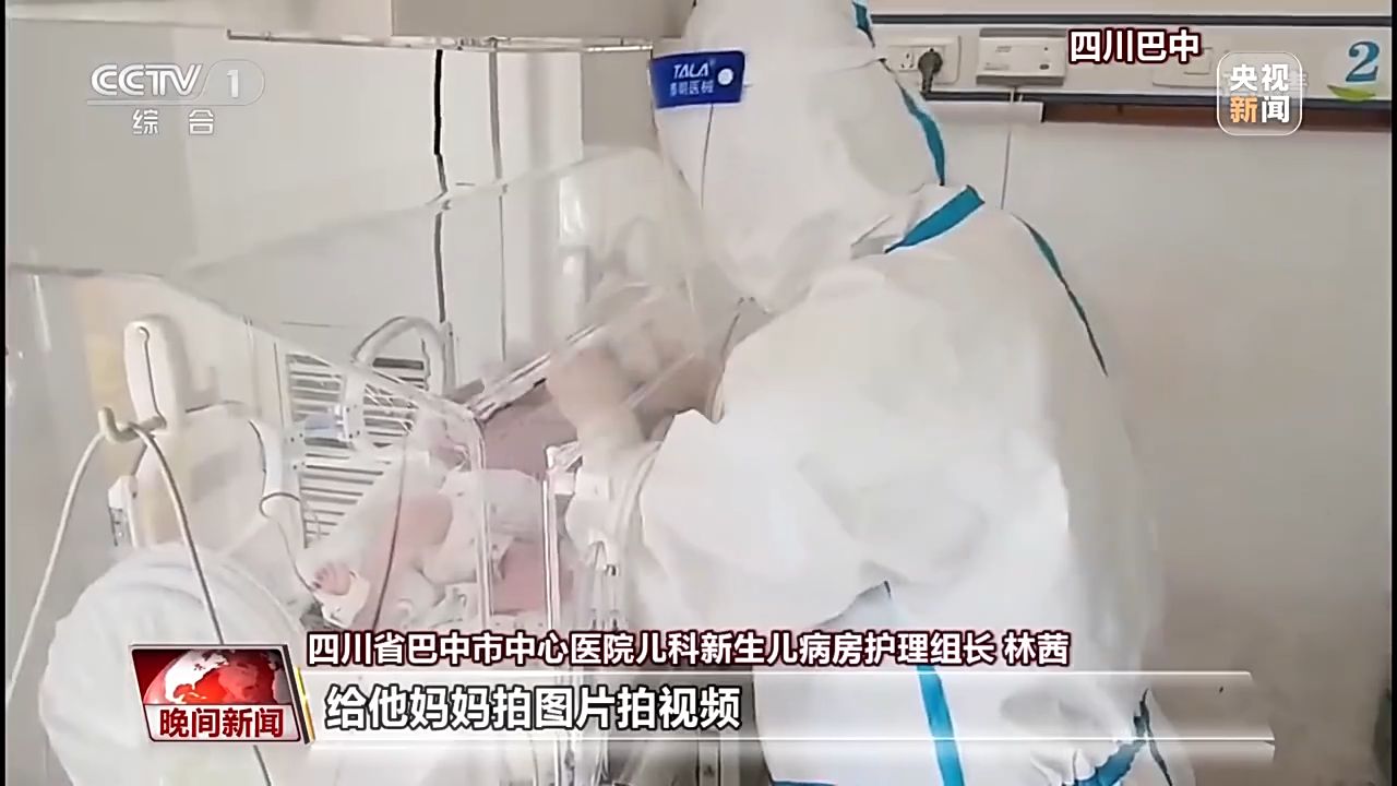 四川省巴中市中心醫(yī)院兒科新生兒病房護理組長 林茜:給他媽媽拍圖片拍視頻,(以)第一人稱的方式給他媽媽寫信。媽媽,媽媽,我是濤濤,今天我吃了50毫升奶,睡得非常香,請你不要擔(dān)心我,媽媽你也要加油。