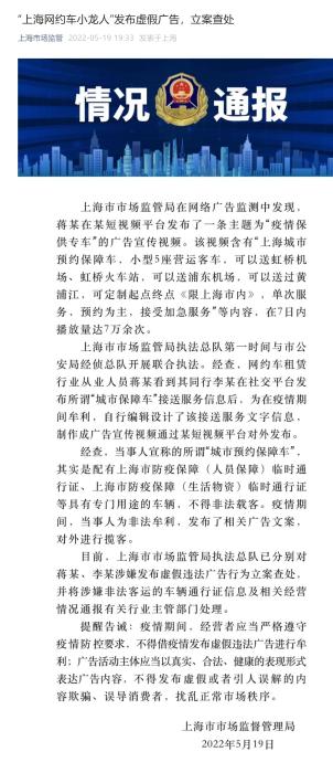 “上海網(wǎng)約車小龍人”發(fā)布虛假?gòu)V告,被立案查處