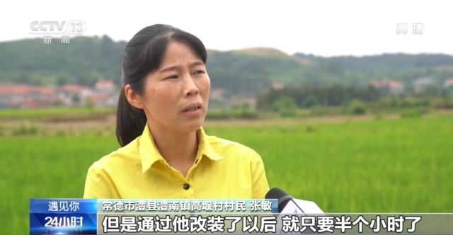 常德市澧縣澧南鎮(zhèn)高堰村村民 張敏:以前耕一畝田大概要一個(gè)小時(shí),但是通過他改裝以后,就只要半個(gè)小時(shí)了,減少人工成本,提高效率。