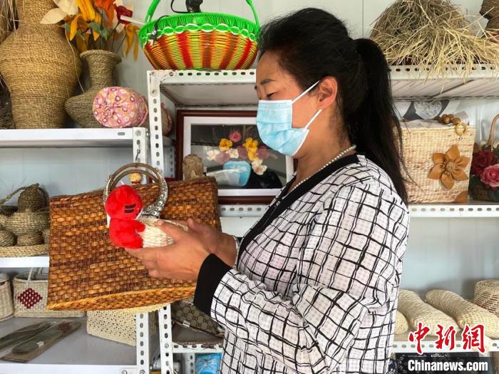 中新網(wǎng)吉林7月1日電 (記者 蒼雁 石洪宇)院子里的櫻桃樹結(jié)出了紅色的果實(shí),紀(jì)紅艷坐在炕頭一眼便看到了。此時(shí)的她沒有時(shí)間品嘗櫻桃,正用玉米葉編織“草編包”,這是眾姐妹接到的新訂單。