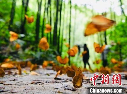 圖為金平縣的中國·紅河蝴蝶谷內箭環(huán)蝶幼蟲在短時間大量集中羽化成蝶。 劉冉陽 攝