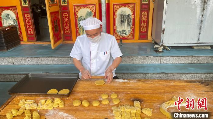 扎著圍裙,戴著廚師帽,個(gè)頭不高,說起話來還有點(diǎn)害羞,整個(gè)人非常質(zhì)樸。這是記者見到張潤明的第一印象。