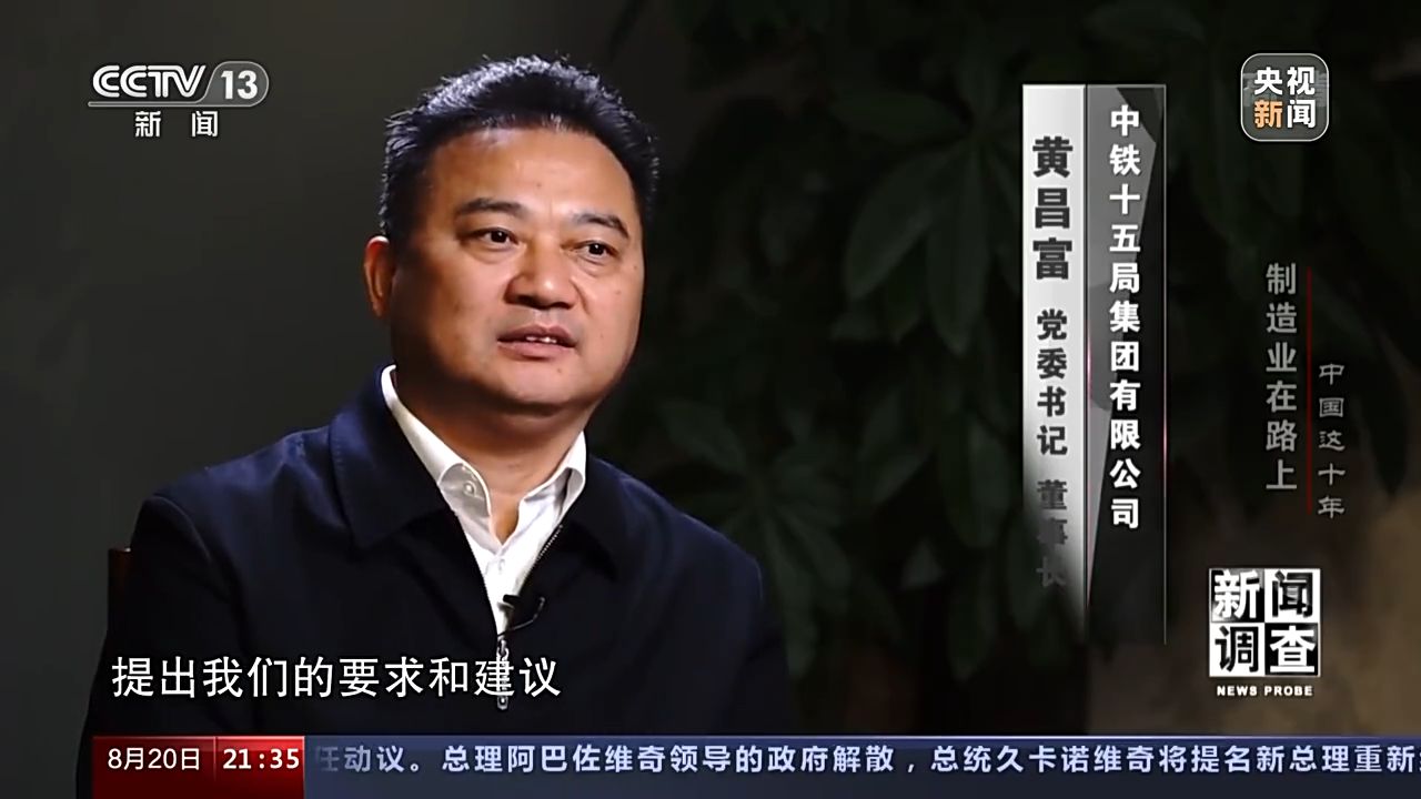 中鐵十五局集團(tuán)有限公司黨委書記 董事長 黃昌富:比如說砂卵石地層,對(duì)這個(gè)刀具的磨損是非常厲害的,所以我們就給它這個(gè)刀具的配置要提出我們的要求和建議。