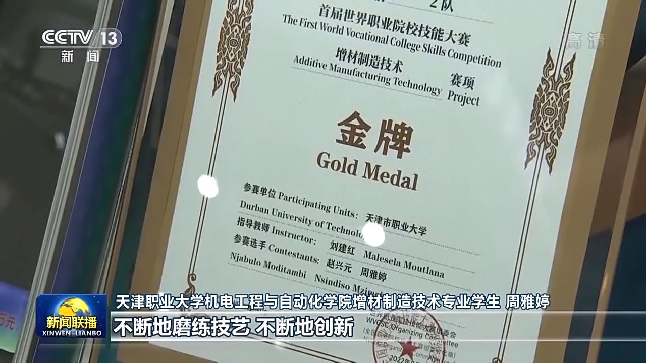 天津職業(yè)大學(xué)機(jī)電工程與自動(dòng)化學(xué)院增材制造技術(shù)專業(yè)學(xué)生 周雅婷:我覺得我是這個(gè)時(shí)代的幸運(yùn)兒,在(學(xué)校)實(shí)訓(xùn)基地,其實(shí)每天都是實(shí)戰(zhàn),我們的老師也是技能大師。以前我覺得大國(guó)重器是高不可攀的,當(dāng)我站在世界級(jí)的領(lǐng)獎(jiǎng)臺(tái)上,我才發(fā)現(xiàn),將平凡做到極致,不斷地磨煉技藝、不斷地創(chuàng)新,也是在為制造大國(guó)重器蓄積力量。
