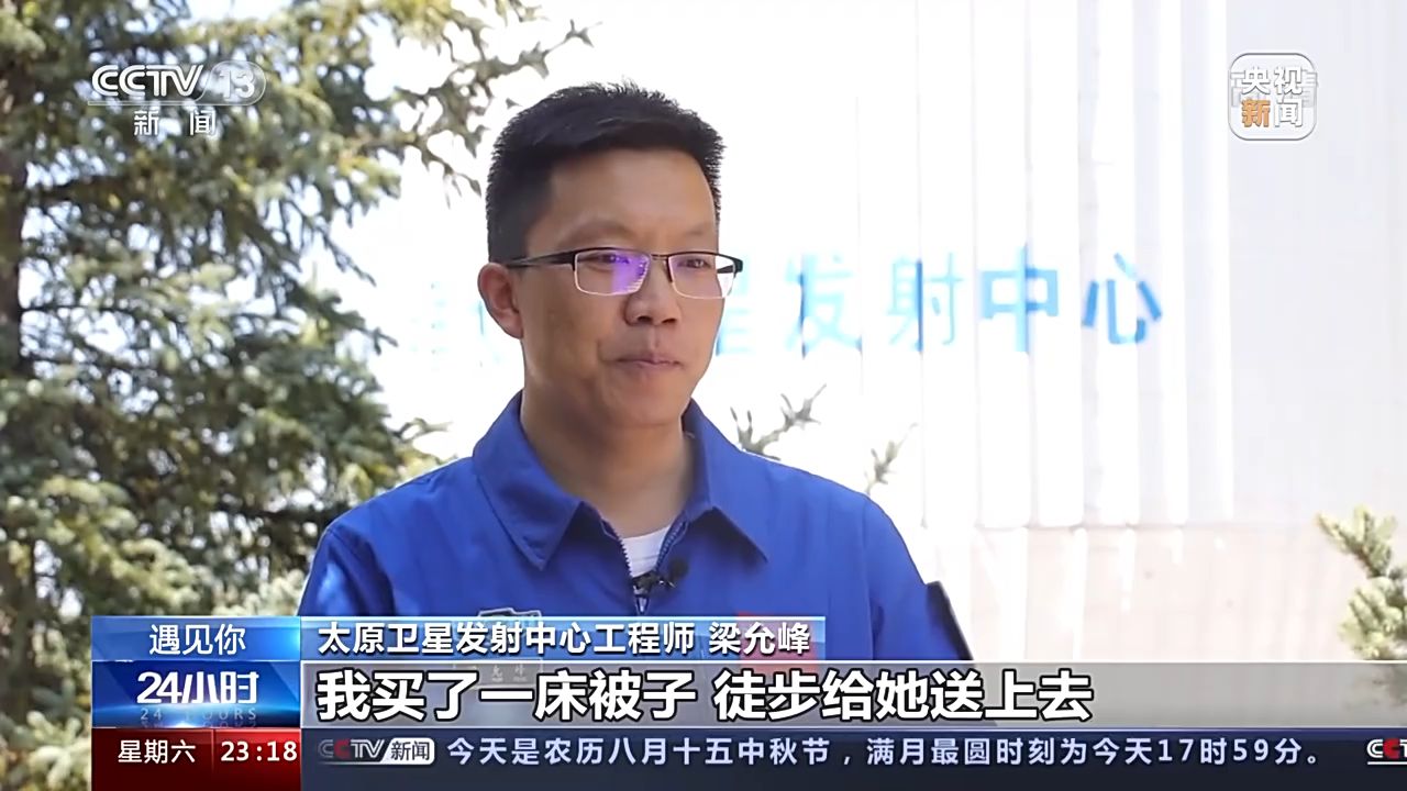 太原衛(wèi)星發(fā)射中心工程師 梁允峰:天氣變涼了,我從山下到山上一個(gè)山頭,大概有四五公里,我買了一床被子徒步給她送上去。