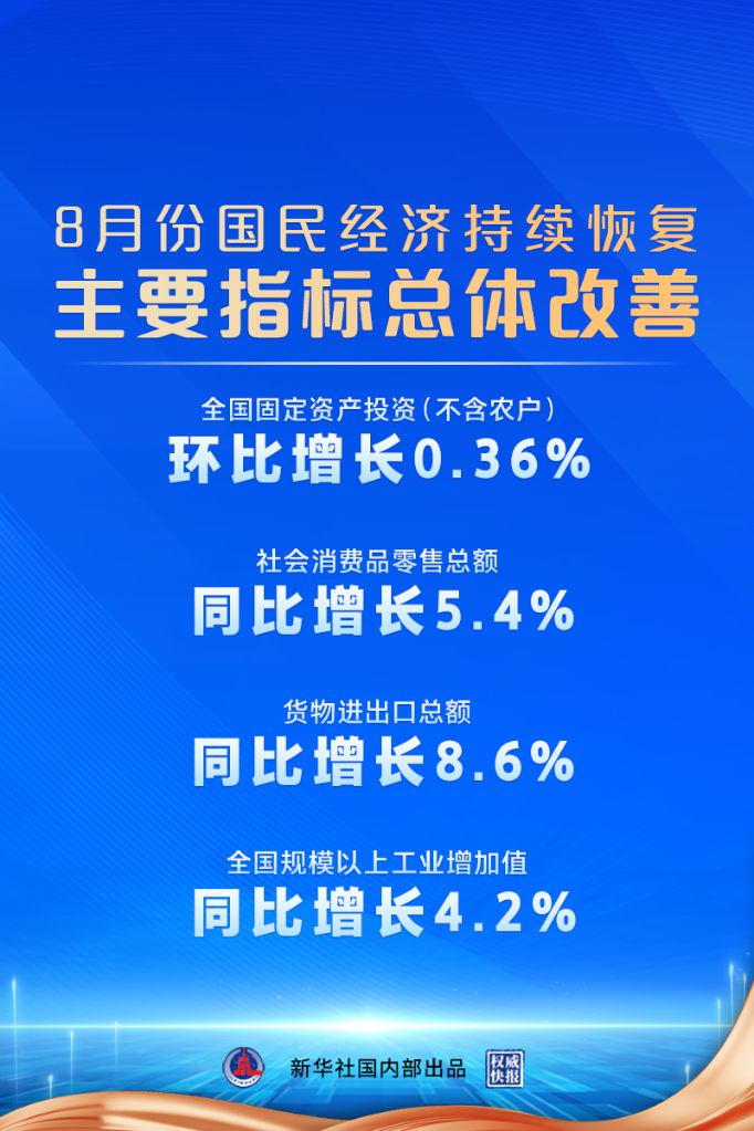 國(guó)家統(tǒng)計(jì)局:8月份國(guó)民經(jīng)濟(jì)持續(xù)恢復(fù),主要指標(biāo)總體改善