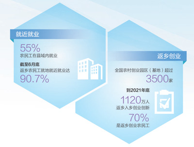 “縣域是農(nóng)民就地就近就業(yè)的蓄水池,目前55%的農(nóng)民工在縣域內(nèi)就業(yè)?!痹艿卤硎荆诳h域大力發(fā)展家政服務(wù)、物流配送、養(yǎng)老托育等,引導(dǎo)具備條件的中心鎮(zhèn)發(fā)展小微企業(yè)集聚區(qū),培育形成帶動力強、就業(yè)容量大的產(chǎn)業(yè),為返鄉(xiāng)農(nóng)民工創(chuàng)造更多的就業(yè)機會。