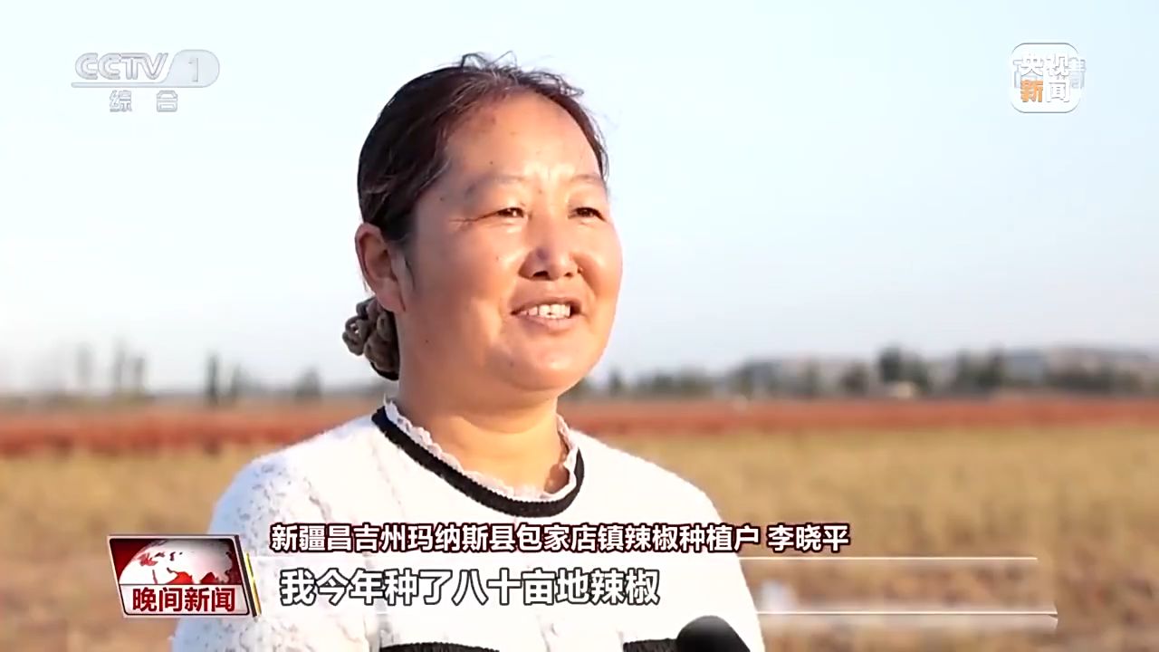 新疆昌吉州瑪納斯縣包家店鎮(zhèn)辣椒種植戶(hù) 李曉平:我今年種了八十畝地辣椒,現(xiàn)在正在機(jī)械采收,以前種這么多地,要最少得十天才能采收,現(xiàn)在機(jī)械采收省事、省力。