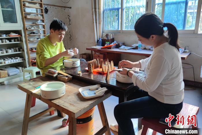 張才枝的兩個(gè)徒弟在學(xué)習(xí)制筆?!枪跇?biāo) 攝