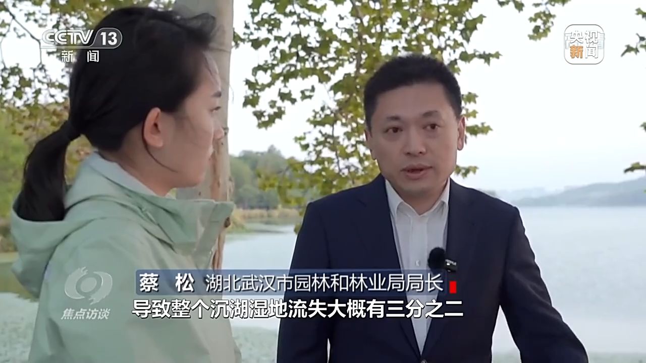 湖北武漢市園林和林業(yè)局局長(zhǎng) 蔡松:圍湖造田、養(yǎng)魚,導(dǎo)致整個(gè)沉湖濕地流失大概有三分之二,比較嚴(yán)重。從2013年開始,武漢市加大對(duì)沉湖濕地的整治力度,通過(guò)生態(tài)補(bǔ)償?shù)姆绞剑麄€(gè)退漁還濕達(dá)到了7.8萬(wàn)畝。