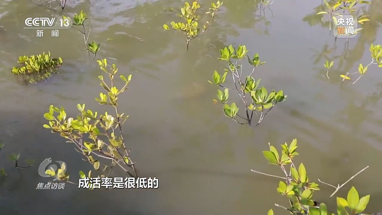 海南東寨港國(guó)家級(jí)自然保護(hù)區(qū)管理局林業(yè)工程師 馮爾輝:紅樹林胚軸要在母樹上發(fā)育成一個(gè)個(gè)體,然后再掉下來(lái),掉到海水里面隨波逐流,成活率是很低的。