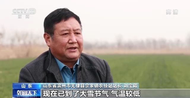在山東省濱州市無棣縣佘家鎮(zhèn),4.5萬畝冬小麥長勢喜人,但是受近日寒潮天氣影響,最低氣溫已達到零下五度到零下八度,為了讓冬小麥安全越冬,當?shù)剞r(nóng)技專家深入田間地頭,及時指導農(nóng)民進行田間管理。