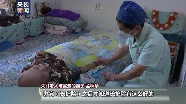 失能老人陳富景的妻子 孟秋華:護(hù)理員一來就幫他揉,我就輕松多了,白天來的好幾個小時我能休息,辦完長護(hù)險(xiǎn)后才知道長護(hù)險(xiǎn)這么好,又解決家庭經(jīng)濟(jì)困難,還有人幫著照顧,我說老頭子有救了。