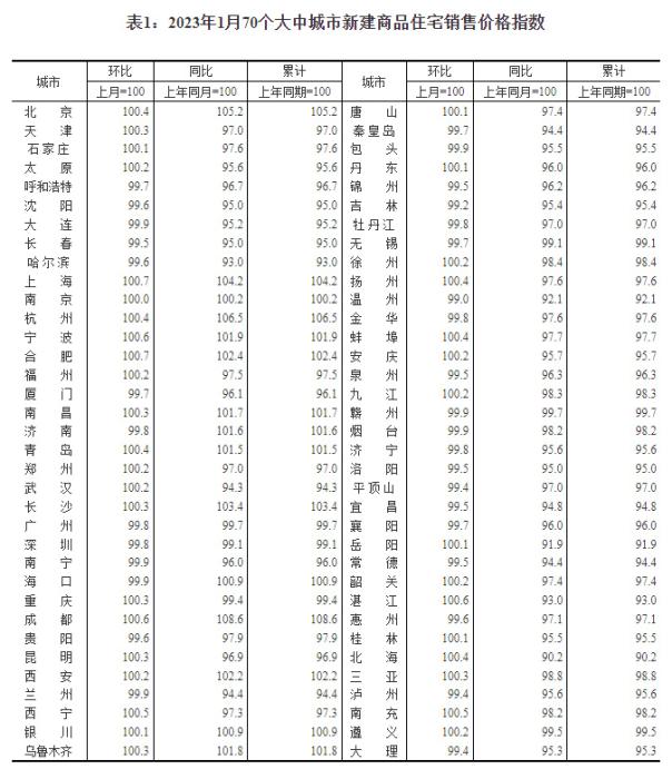 2023年1月份,70個(gè)大中城市中商品住宅銷售價(jià)格環(huán)比上漲城市個(gè)數(shù)增加;一線城市商品住宅銷售價(jià)格環(huán)比轉(zhuǎn)漲、二三線城市環(huán)比降勢(shì)趨緩,一線城市商品住宅銷售價(jià)格同比上漲、二三線城市同比下降。