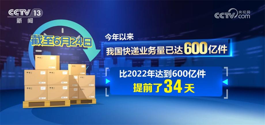 國(guó)家郵政局?jǐn)?shù)據(jù)顯示,截至6月24日,今年以來我國(guó)快遞業(yè)務(wù)量已達(dá)600億件,比2022年達(dá)到600億件提前了34天。