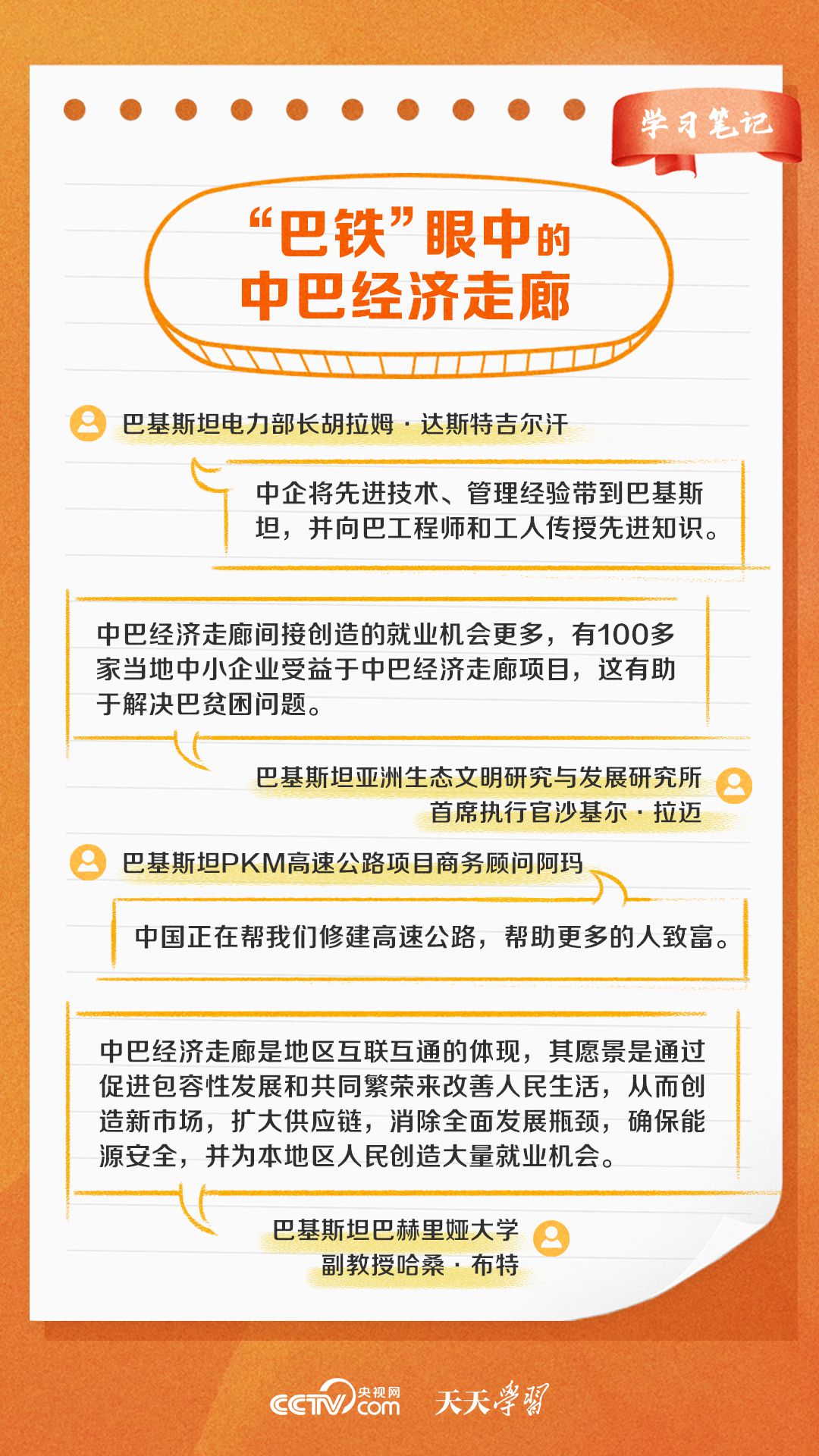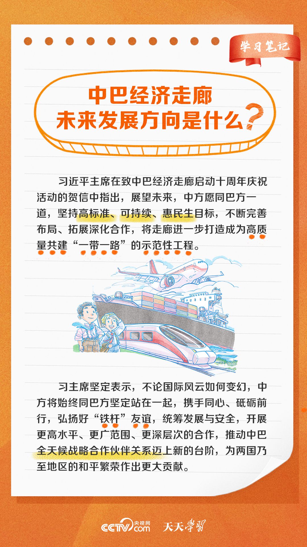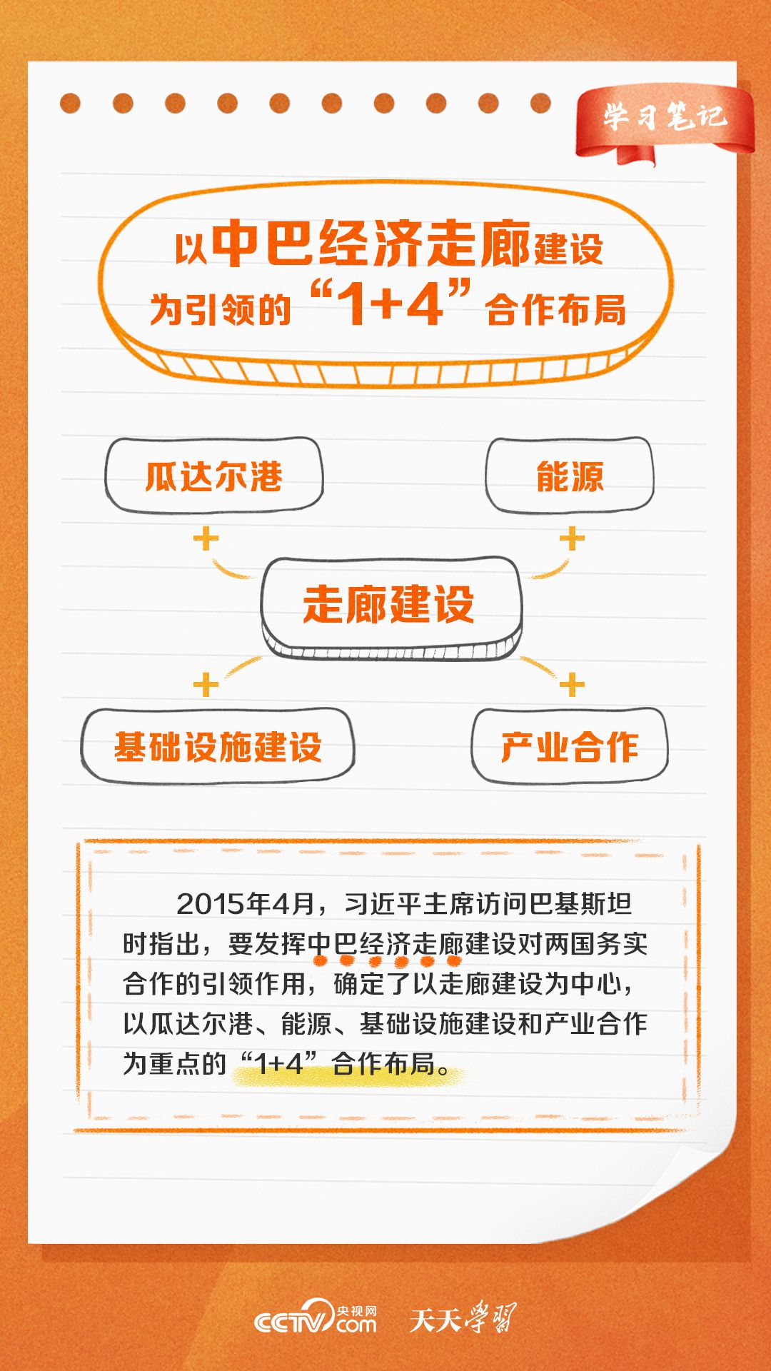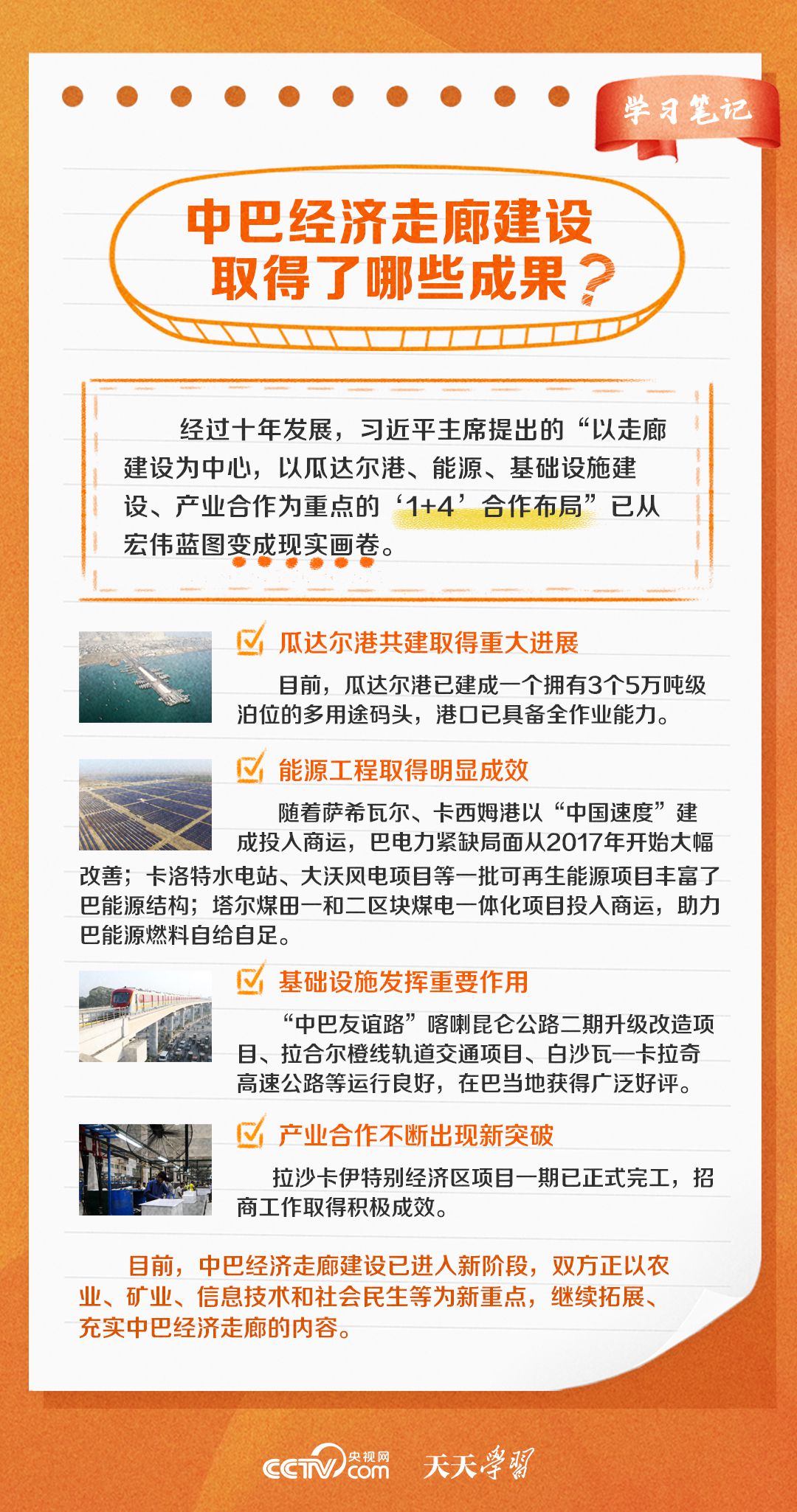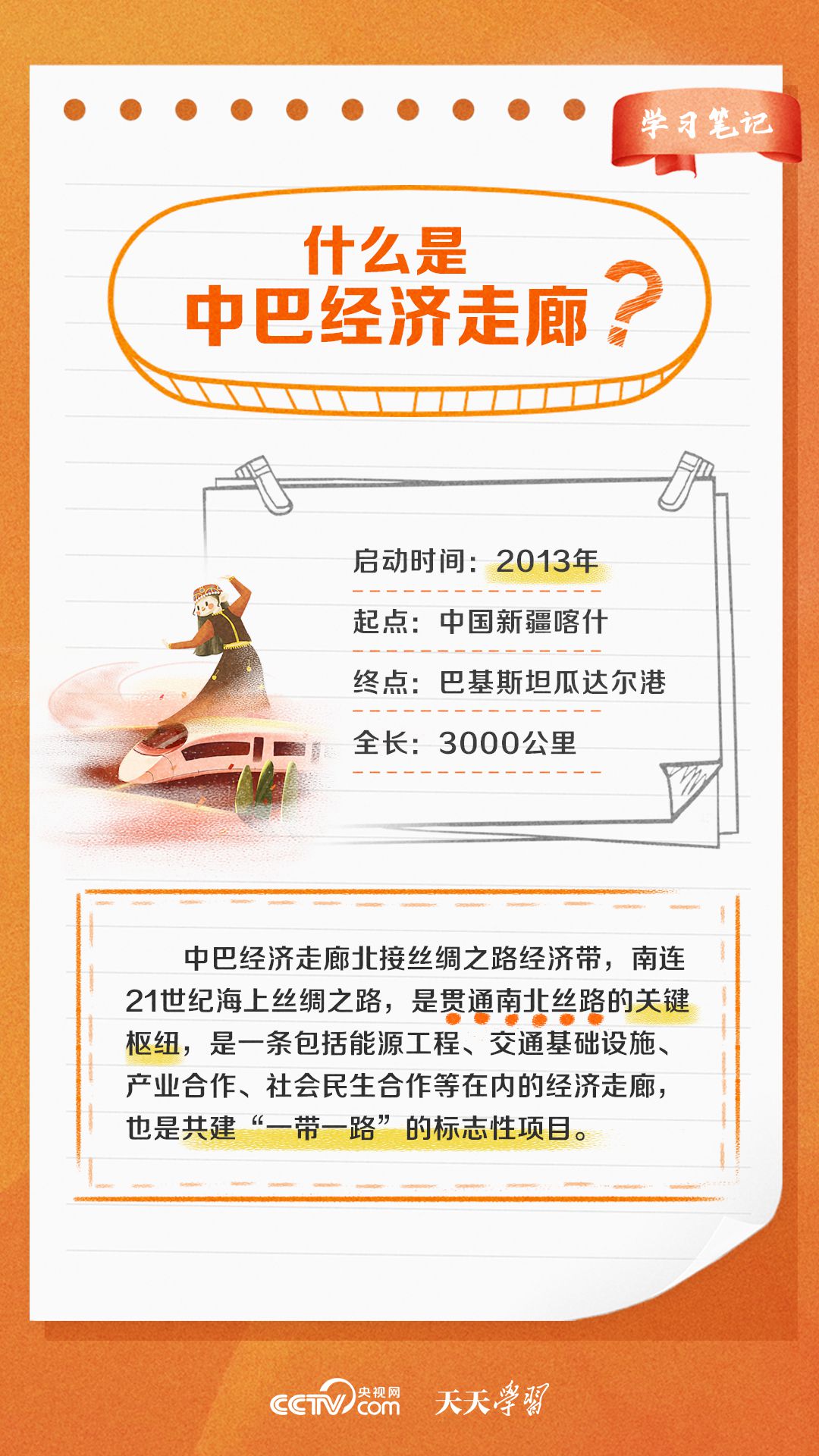 今年是習(xí)近平主席提出共建“一帶一路”倡議十周年,也是中巴經(jīng)濟走廊啟動十周年。經(jīng)過十年的發(fā)展,中巴經(jīng)濟走廊已成為中巴友誼“新標桿”。央視網(wǎng)《天天學(xué)習(xí)·學(xué)習(xí)筆記》特梳理中巴經(jīng)濟走廊相關(guān)知識點,與您一起學(xué)習(xí)。