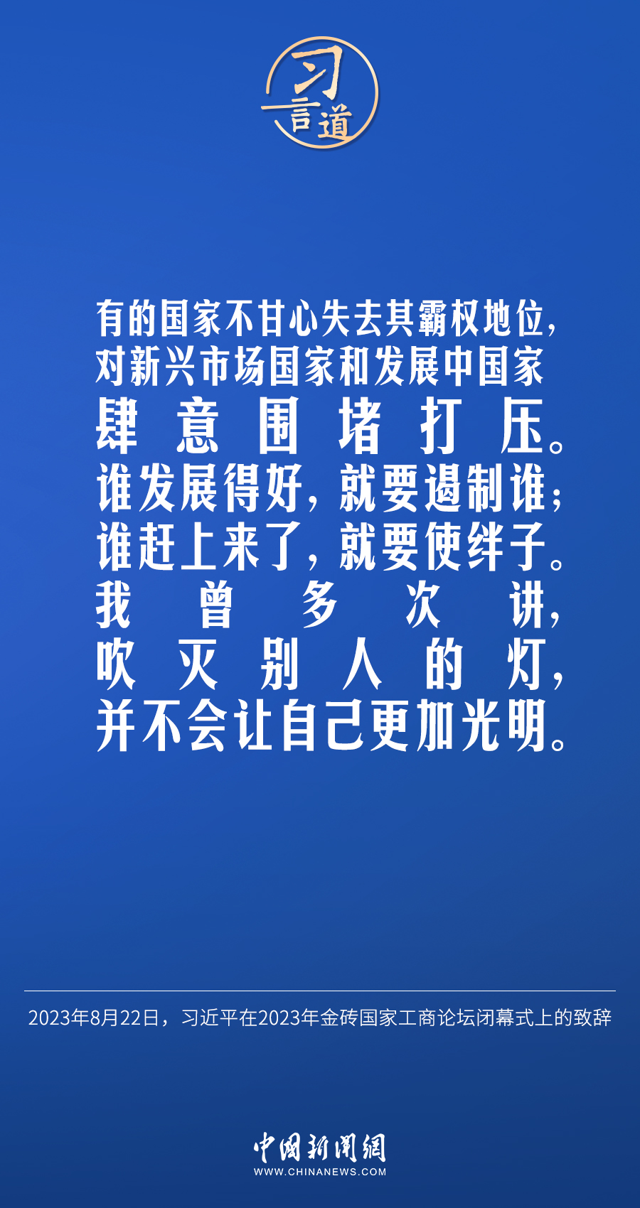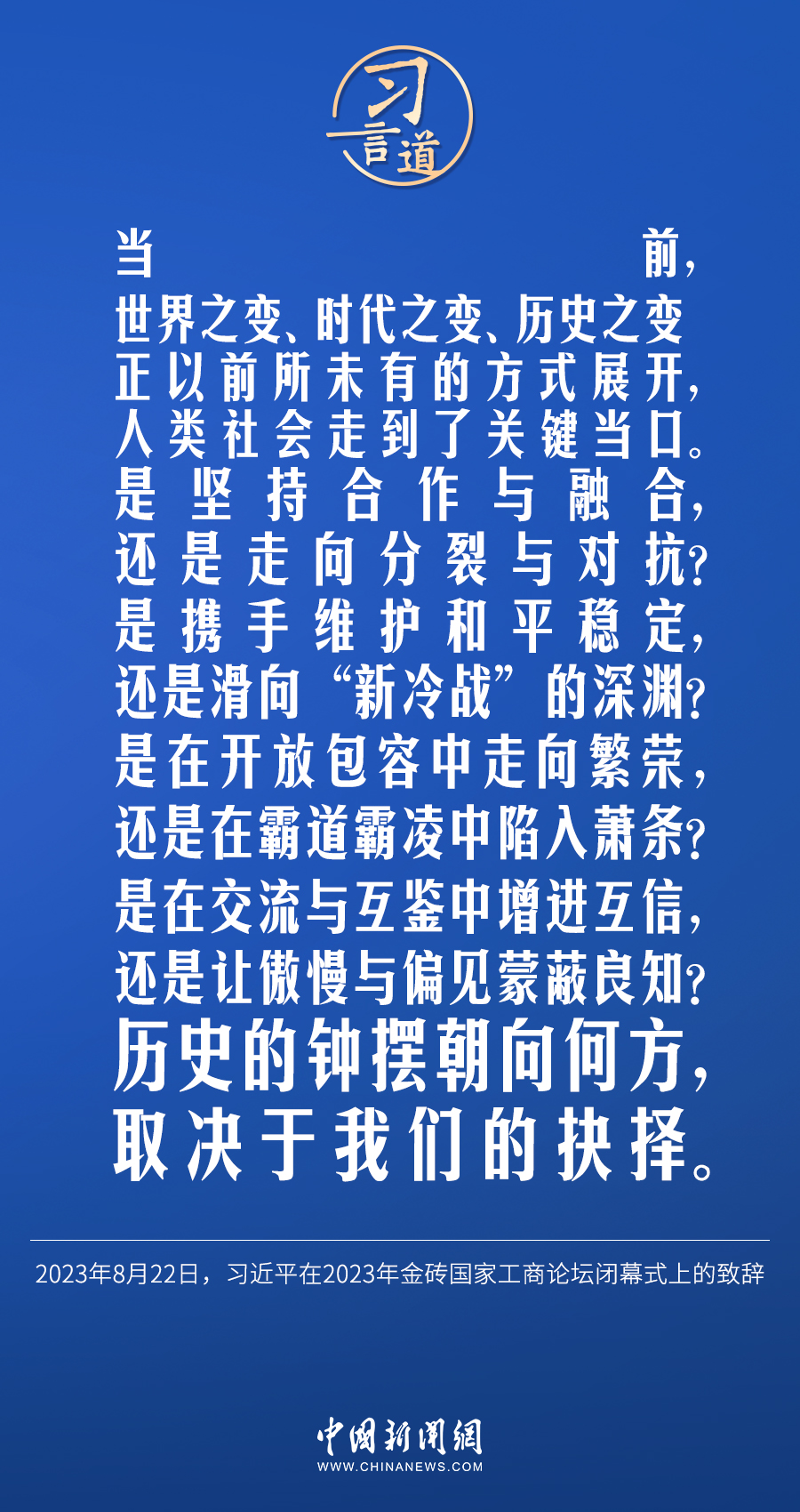 當(dāng)?shù)貢r(shí)間8月22日下午,中國(guó)國(guó)家主席習(xí)近平向約翰內(nèi)斯堡金磚國(guó)家工商論壇閉幕式發(fā)表題為《深化團(tuán)結(jié)合作 應(yīng)對(duì)風(fēng)險(xiǎn)挑戰(zhàn) 共建更加美好的世界》的致辭。習(xí)近平指出——