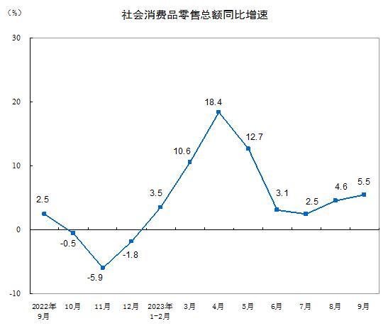 國家統(tǒng)計局:9月份社會消費(fèi)品零售總額增長5.5%