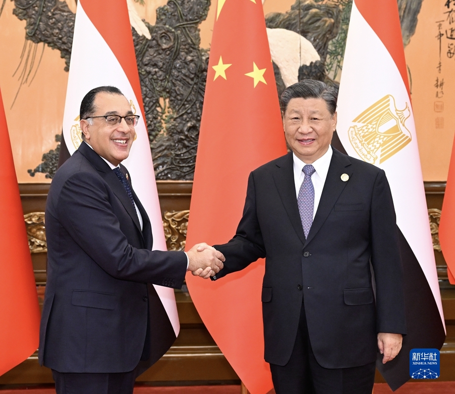 10月19日上午,國(guó)家主席習(xí)近平在北京人民大會(huì)堂會(huì)見來華出席第三屆“一帶一路”國(guó)際合作高峰論壇的埃及總理馬德布利。