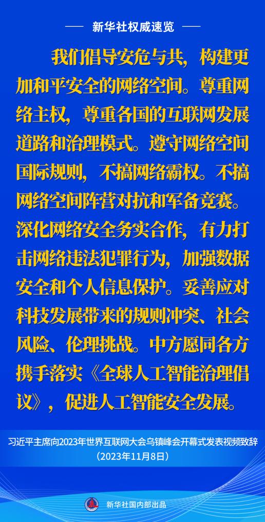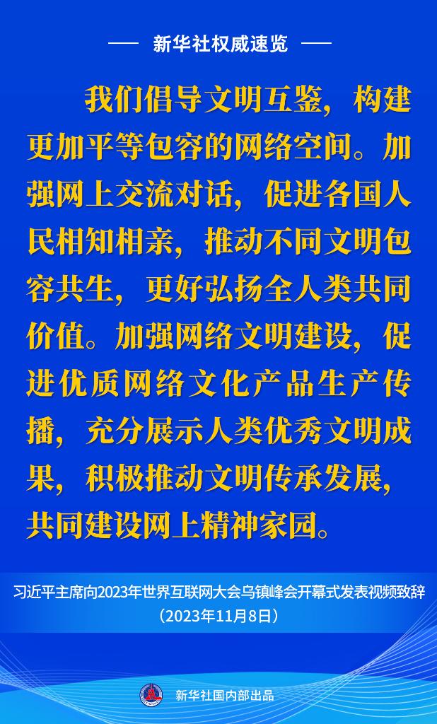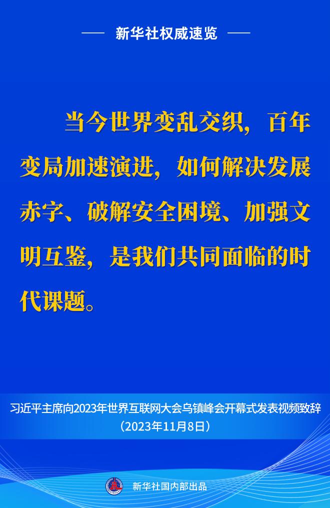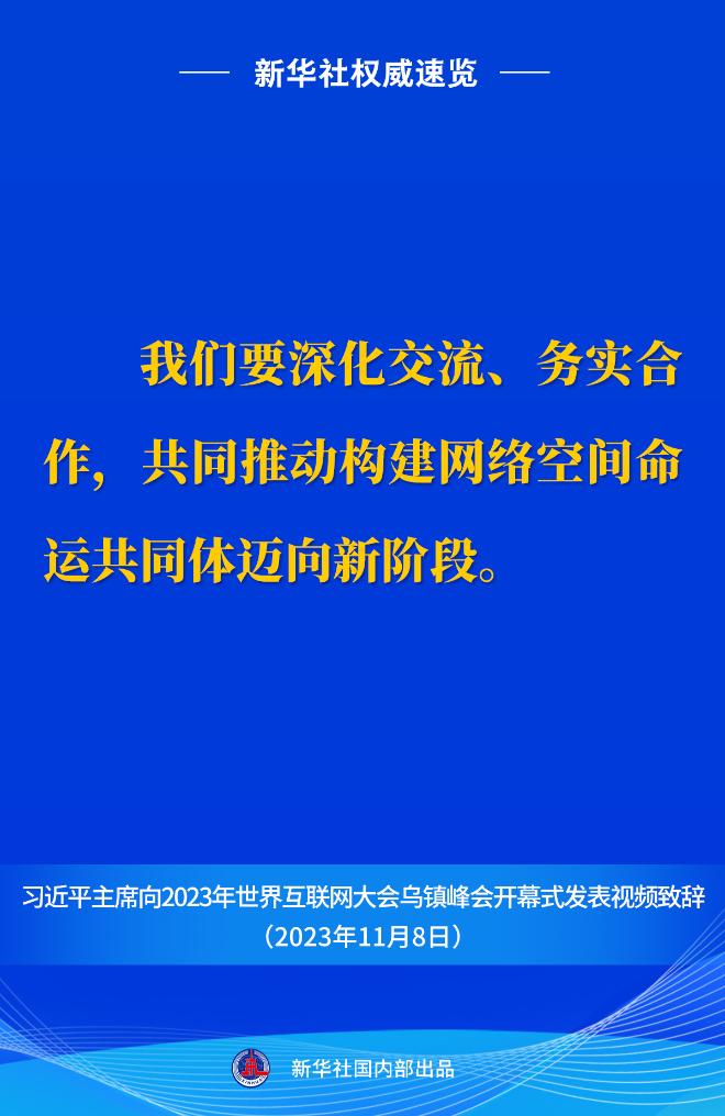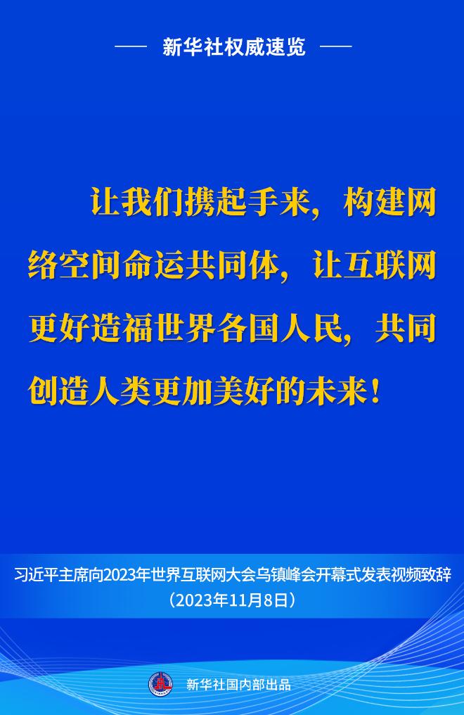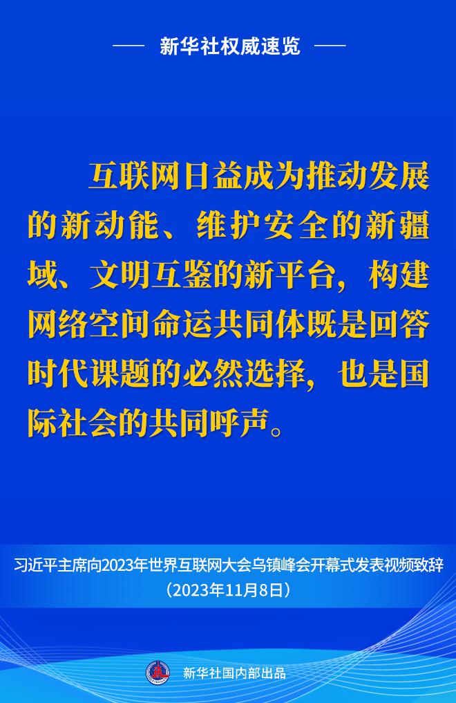 新華社權(quán)威速覽丨習(xí)近平主席向2023年世界互聯(lián)網(wǎng)大會烏鎮(zhèn)峰會開幕式視頻致辭金句