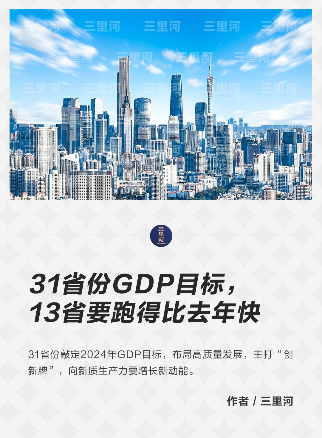 省級地方兩會是觀察中國經(jīng)濟的重要窗口。目前,中國31個省區(qū)市2023年GDP數(shù)據(jù)全部出爐,2024年經(jīng)濟增長預期目標亦全數(shù)公布。