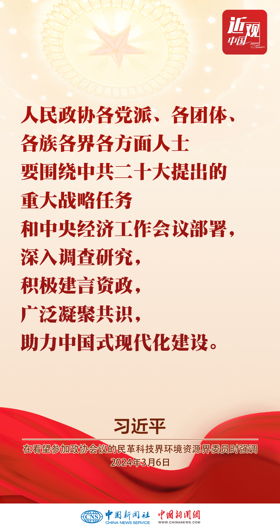 3月6日,中共中央總書記、國家主席、中央軍委主席習(xí)近平看望參加全國政協(xié)十四屆二次會議的民革、科技界、環(huán)境資源界委員,并參加聯(lián)組會,聽取意見和建議。他強(qiáng)調(diào)——