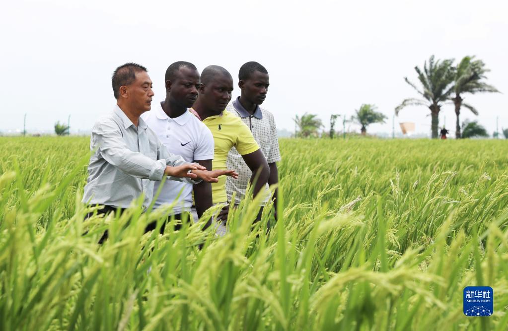 2022年10月29日,在布隆迪布班扎省基航加縣,中國水稻專家但松柏(左一)指導(dǎo)當?shù)剞r(nóng)民種植水稻。新華社記者 董江輝 攝