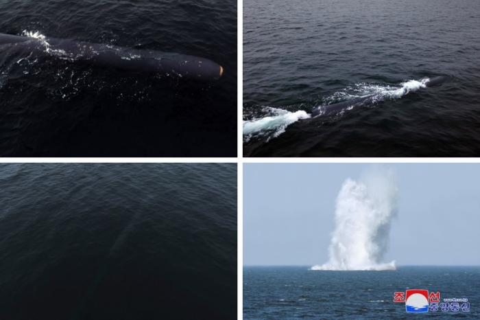 據(jù)報(bào)道,4月4日下午,朝鮮核無人潛水攻擊艇“海嘯—2”型在咸鏡南道金野郡加津港投入試驗(yàn),沿著在朝鮮東海設(shè)定的模擬1000公里距離的橢圓及八字形航線潛航71小時(shí)6分,4月7日下午到達(dá)咸鏡南道端川市龍臺(tái)港前海預(yù)定目標(biāo)水域,試驗(yàn)用戰(zhàn)斗部在水下成功爆炸。
