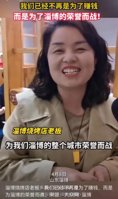 從當地人自發(fā)形成“把周末燒烤讓給外地游客”的默契,到淄博交警燒烤攤暖心號召當地人“要熱情好客,把淄博這張名片打出去”;從燒烤店主苦口婆心“勸退”排隊顧客,到燒烤店老板娘發(fā)出“不為賺錢,而是為家鄉(xiāng)榮譽而戰(zhàn)”的質樸話語……