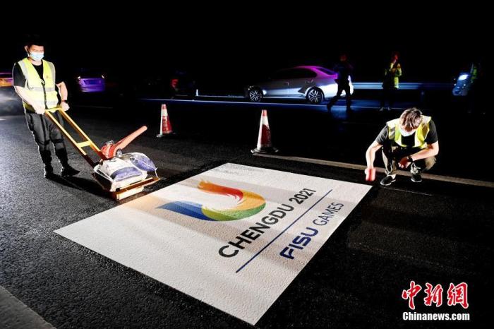 資料圖:圖為成都大運(yùn)會(huì)專(zhuān)用車(chē)道地標(biāo)設(shè)立現(xiàn)場(chǎng)。中新社記者 安源 攝