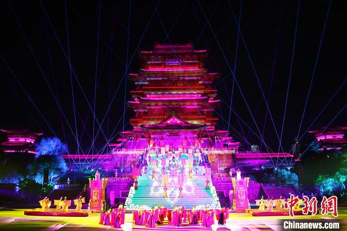 圖為2021年1月1日晚,大型實(shí)景演出《尋夢(mèng)滕王閣》在江西南昌滕王閣景區(qū)正式公演。 中新社記者 劉占昆 攝