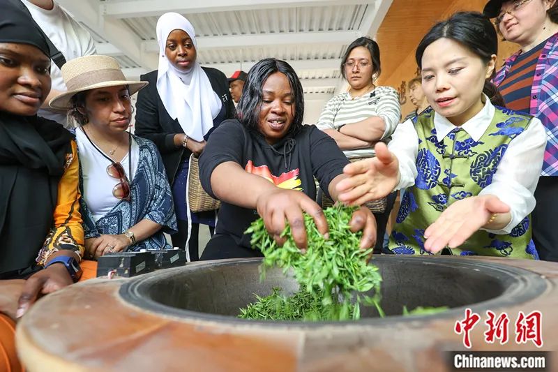 2023年4月,浙江省湖州市德清縣莫干山鎮(zhèn)東山村一茶園,外國留學(xué)生在學(xué)習(xí)制茶知識。王樹成 攝