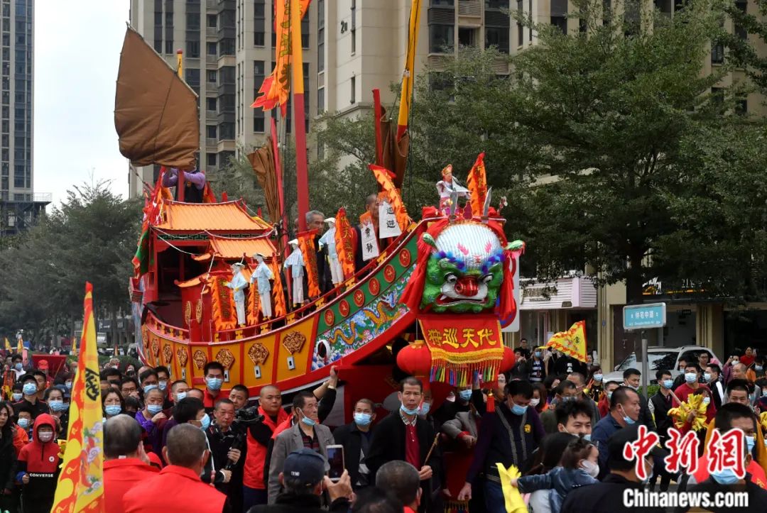 2020年12月,福建廈門市鐘宅畬族社區(qū)舉行“送王船 做好事”傳統(tǒng)民俗活動。呂明 攝