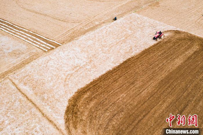 村民駕駛農(nóng)機犁地?!埼能?攝