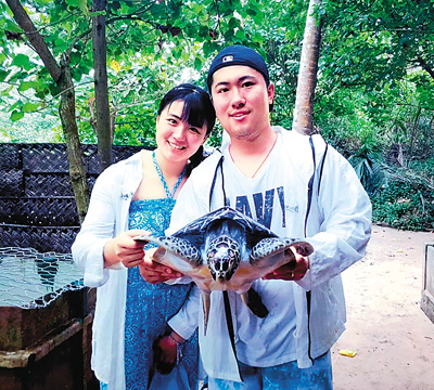許振軒(右)與李丹宜在斯里蘭卡體驗(yàn)了一場(chǎng)特殊的“海龜保育義工之旅”。