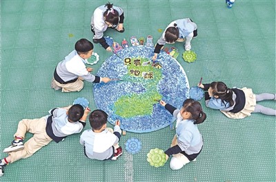 日前,浙江省臺(tái)州市仙居縣實(shí)驗(yàn)幼兒園舉行“世界地球日”主題教育活動(dòng),通過(guò)手繪地球等環(huán)節(jié)引導(dǎo)孩子們從小樹(shù)立愛(ài)護(hù)地球、人與自然和諧共生的理念。圖為孩子們?cè)凇笆掷L地球”。