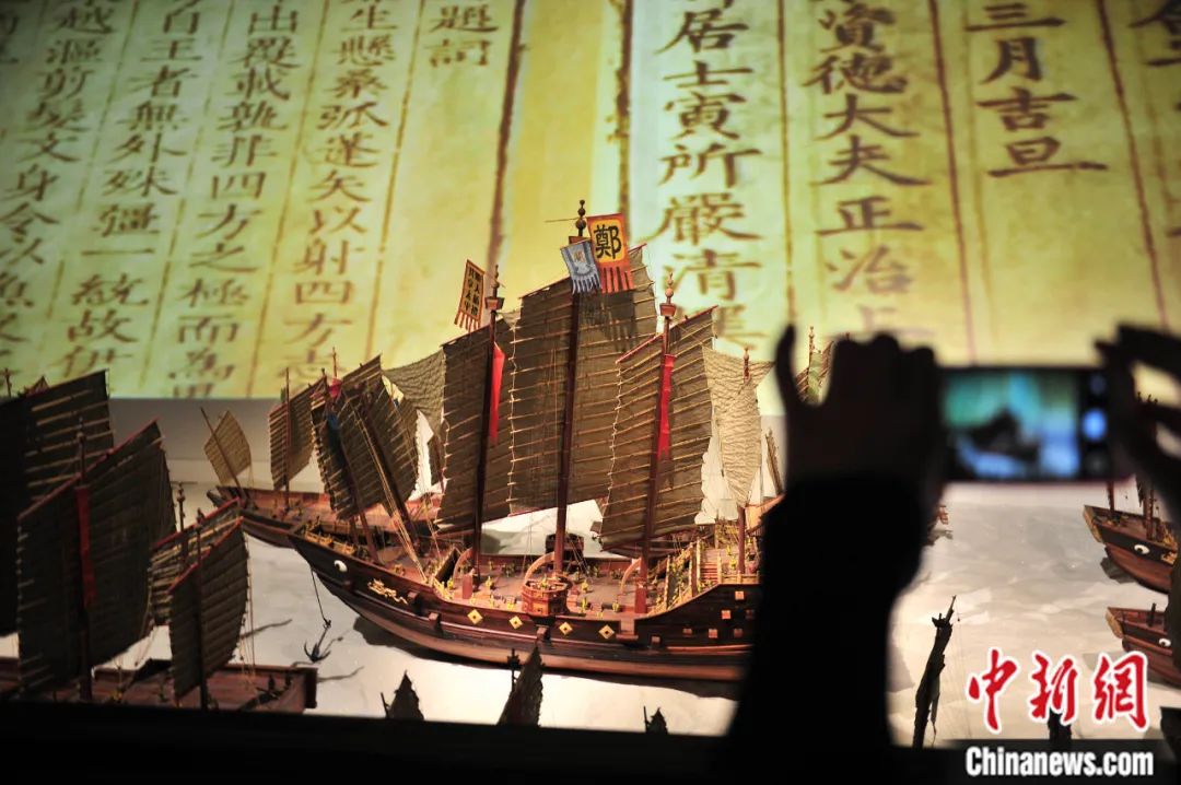 云南昆明鄭和紀(jì)念館,鄭和船隊(duì)模型吸引觀眾。劉冉陽(yáng) 攝