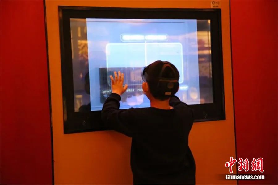 運(yùn)用現(xiàn)代科技手段展示的彌勒會(huì)見記受到學(xué)生的關(guān)注和喜愛。新疆哈密市博物館 供圖