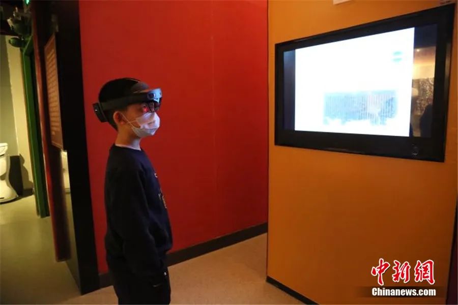 新疆哈密市小朋友利用MR眼鏡對彌勒會(huì)見記進(jìn)行參觀體驗(yàn)。新疆哈密市博物館 供圖
