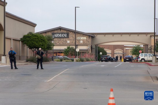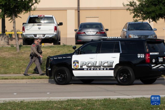 這是5月6日在美國(guó)得克薩斯州達(dá)拉斯近郊發(fā)生槍擊事件的購(gòu)物中心拍攝的警察和警車。美國(guó)得克薩斯州達(dá)拉斯近郊一家購(gòu)物中心6日發(fā)生槍擊事件。新華社發(fā)(田丹攝)