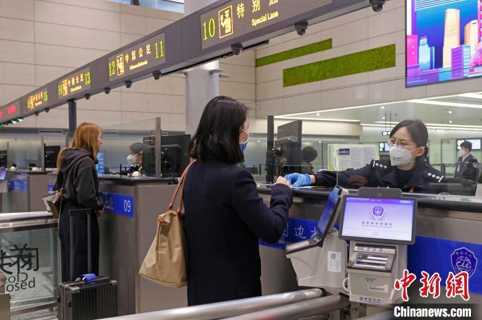 資料圖:虹橋邊檢站民警在對出境旅客進(jìn)行信息核查?!∫罅⑶?攝