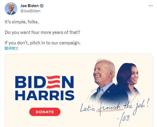 CNN注意到,在特朗普的直播結(jié)束后不久,美國總統(tǒng)拜登在社交媒體上發(fā)出了政治籌款呼吁,并配文稱,“很簡單,伙計們。 你還想再那樣過四年嗎?如果你不喜歡,請參與我們的競選活動。”
