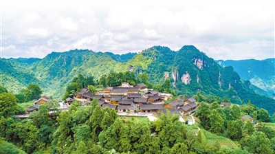 鳥瞰湖南省湘西土家族苗族自治州花垣縣十八洞村梨子寨風光。
