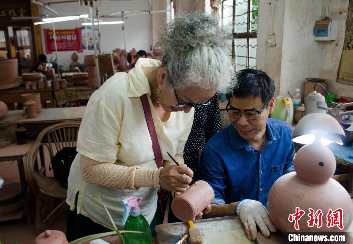 中新社欽州5月17日電 (翟李強(qiáng))“你泥中有我,我泥中有你?!闭趶V西參訪的臺(tái)灣花蓮縣秀林鄉(xiāng)陶樸閣美學(xué)才藝發(fā)展協(xié)會(huì)理事長(zhǎng)連美惠一邊哼著歌,一邊向記者介紹花蓮陶瓷與廣西欽州坭興陶“連親”的故事,她很開心再次來到廣西“再續(xù)前緣”。