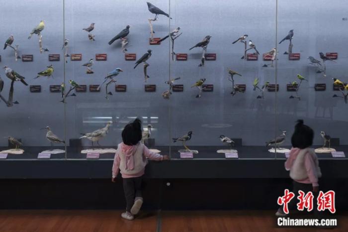 2022年5月18日是國(guó)際博物館日,小朋友走進(jìn)昆明動(dòng)物博物館參觀鳥(niǎo)類標(biāo)本。康平 攝