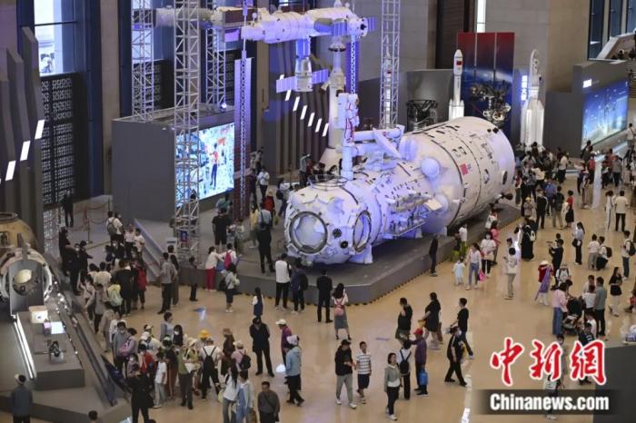 觀眾在中國(guó)國(guó)家博物館參觀“中國(guó)載人航天工程30年成就展”。田雨昊 攝