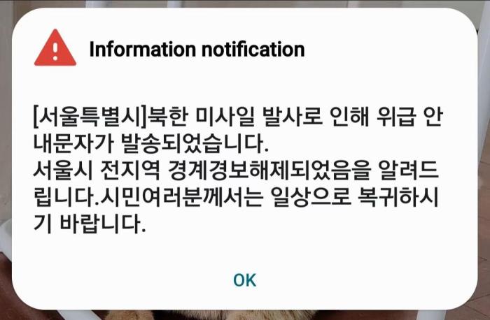 7時3分,首爾市民再次收到消息:“首爾特別市發(fā)布的警戒警報屬于誤發(fā)事項,特此通知?!?/p>